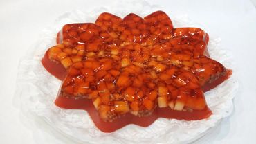 Gelatina de granada, tuna y almendra, con los colores patrios y los sabores de la temporada.